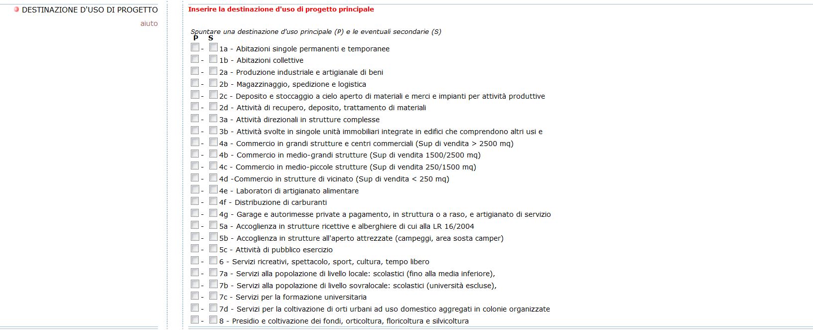 Poi arrivo a dover dichiarare la destinazione d’uso di progetto. Se non la compilo il sistema non può proprio andare avanti …è una cosa gravissima. Mi compare questa dicitura: